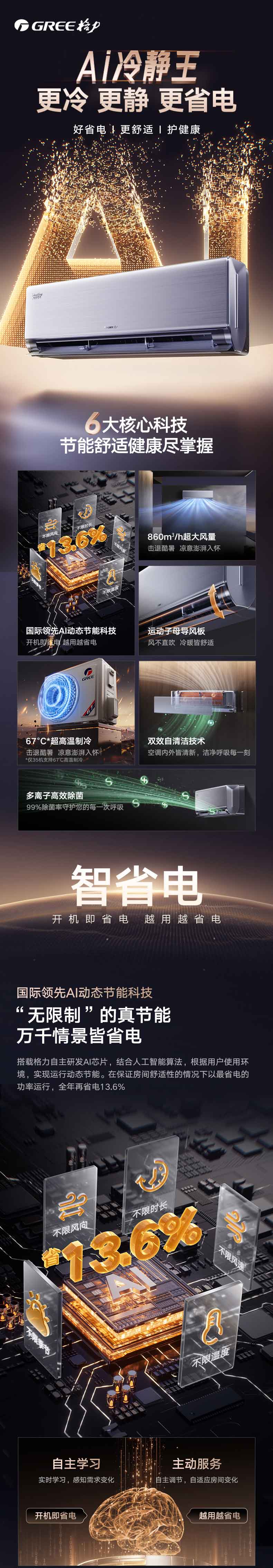 30年口碑认证,更冷更静更省电,有Ai更出色,6大核心科技,节能舒适健康尽在掌握